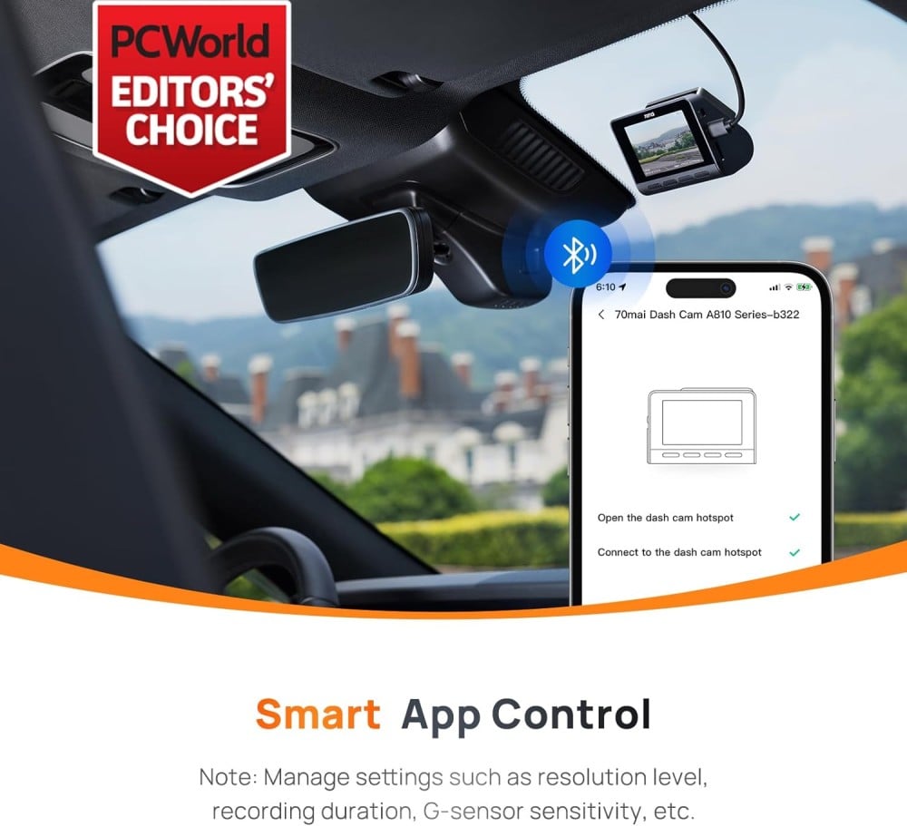 5- يوجد واي فاي WiFi لربط بالجوال مع التطبيق 70mai موجود بالاندرويد او الايفون لتحميل المقاطع الفيديو والتقاط الصور.